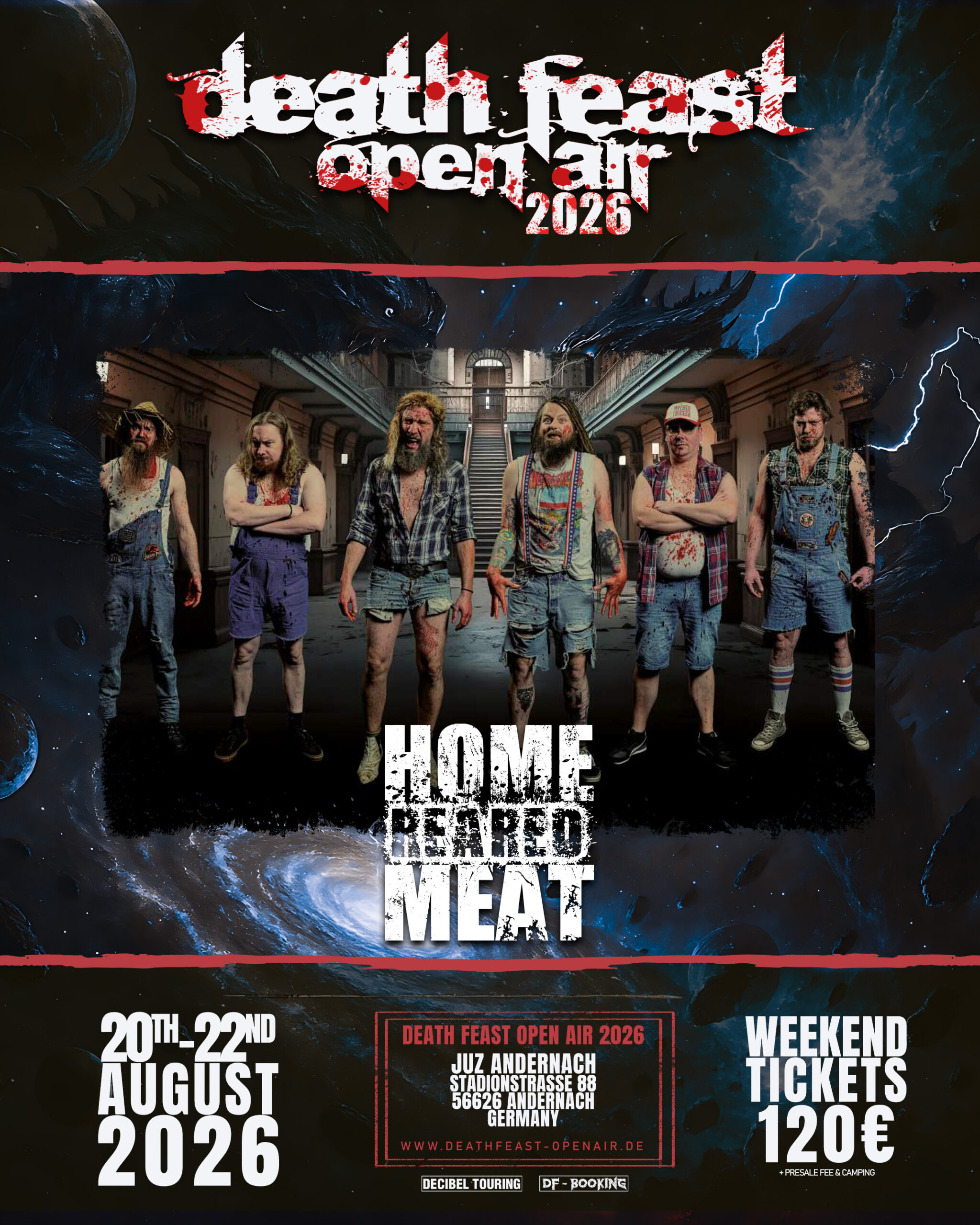 Every great party needs an opening act that sets the tone and we found exactly the right band for that job. The honor of opening DEATHFEAST OPEN AIR 2026 - OFFICIAL EVENT belongs to these rednecks straight from Lower Saxony. Thursday midtime, first riff of the weekend, they'll be the ones to kick this whole madness off and trust us, if you thought showing up early wasn't worth it, think again. Raw and heavy Death Metal from the German underground, and they're coming in hot with fresh new material ready to tear the stage apart. Welcome Home Reared Meat from Germany! Don't forget to