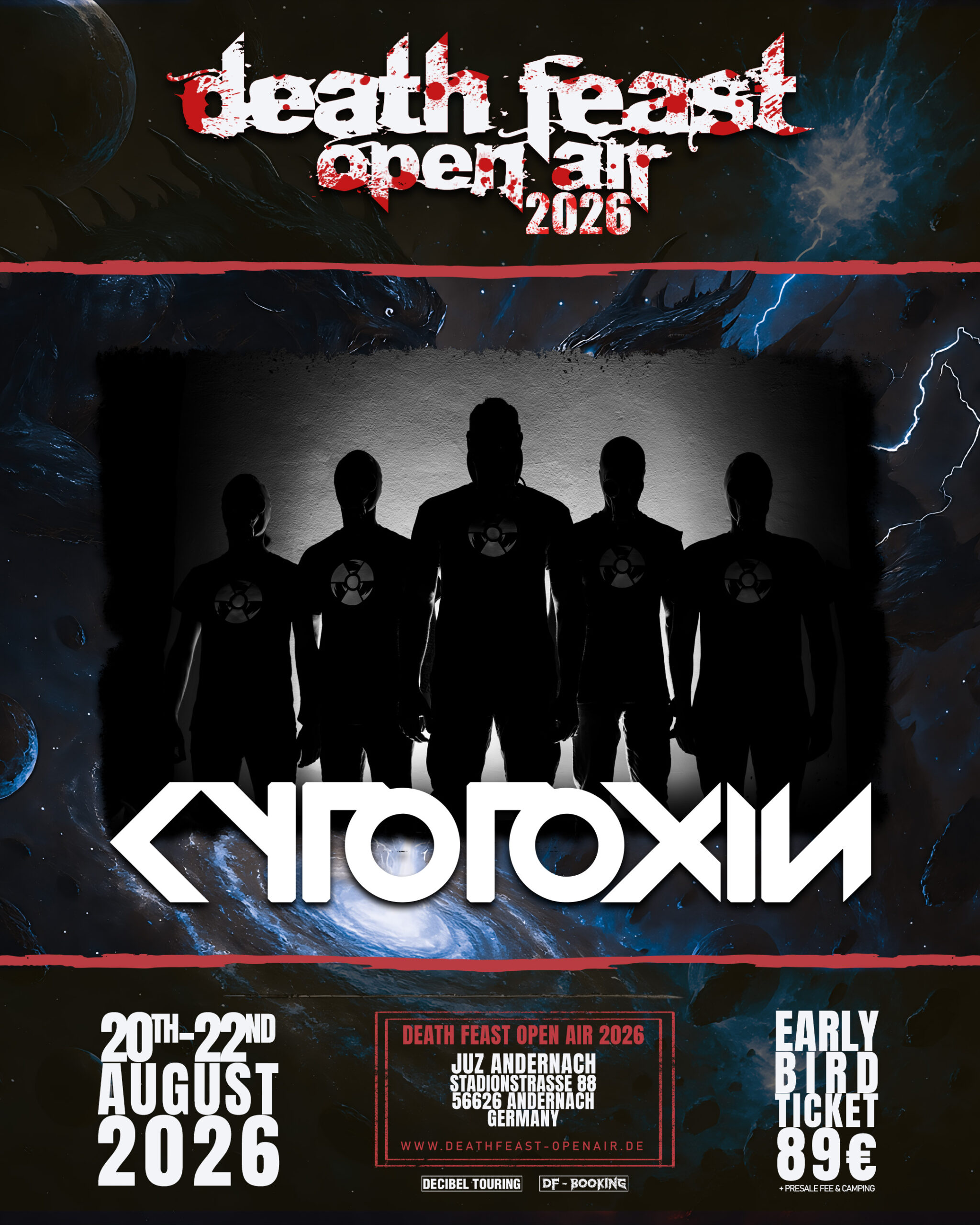 Our second announcement will hit you like a gorilla on steroids. Maximum technicality and maximum speed will lead to maximum pit madness. For the first time ever, this radioactive force will set foot on the DEATHFEAST OPEN AIR 2026 - OFFICIAL EVENT stage and we are more than ready for the fallout. Prepare for blastbeats at nuclear intensity and riffs sharp enough to cut through concrete. Welcome Cytotoxin from Germany! Make sure to grab your tickets while the early bird phase is still on!